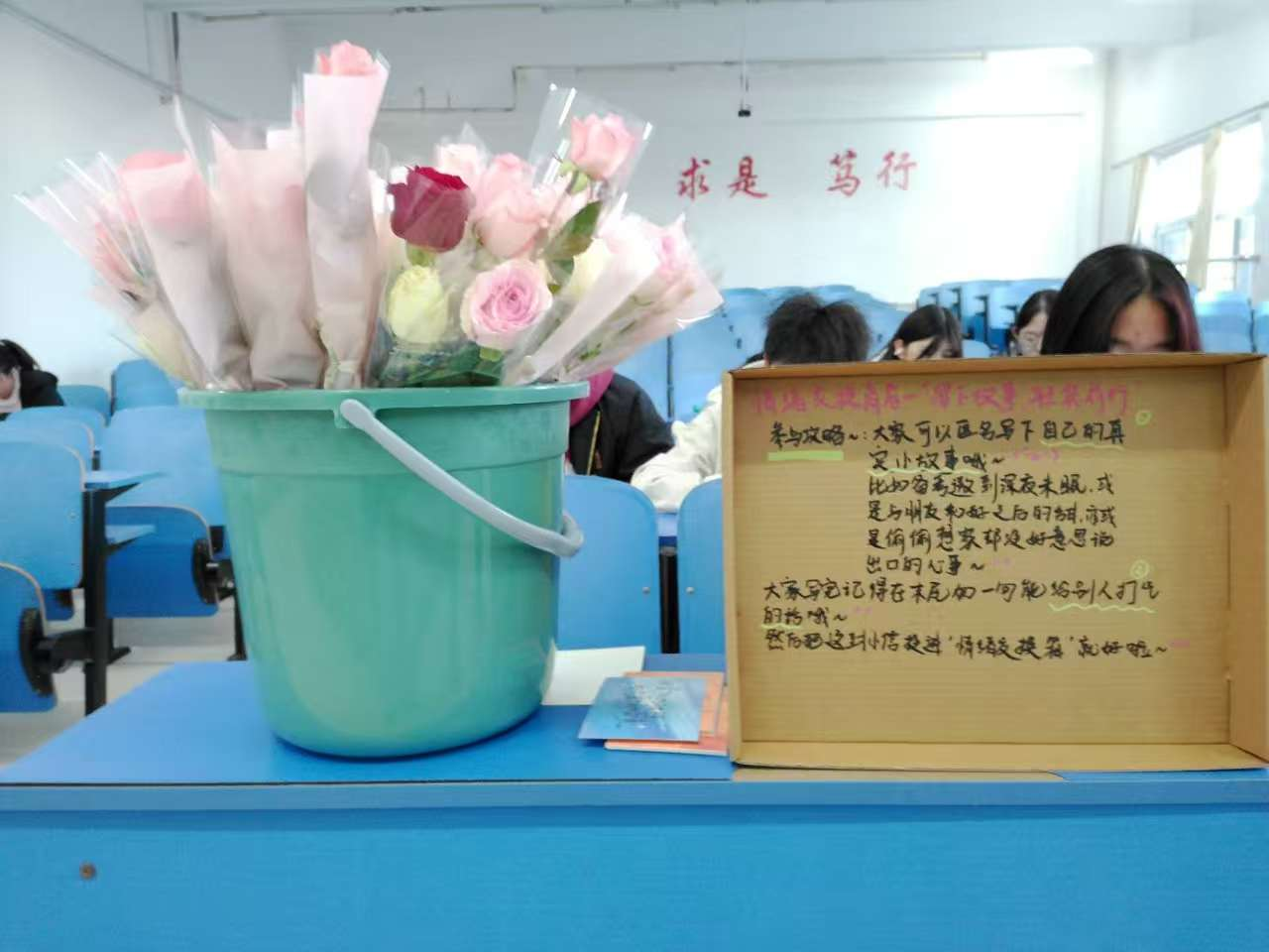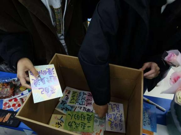 在“情绪交换箱”环节中,同学们匿名写下自己真实故事和对他人的美好祝愿,投入交换箱,同时从箱中随机拿取一张明信片细细品读,同学们倾诉了自己的心绪,也收到了来自陌生人的温柔。